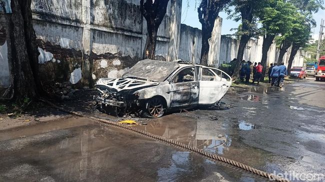 Mobil patroli diduga milik Polda Jatim terbakar habis di depan Badan Penyalur Tenaga Kerja AL Wilayah Timur (Balurjaltim). Mobil itu terbakar habis diduga korsleting listrik.