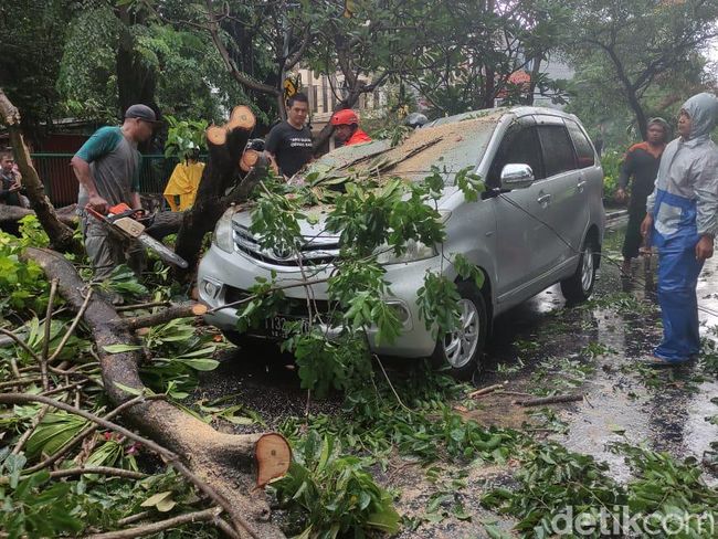 "Kami membantu evakuasi pohon yang tumbang menimpa mobil. Mengerahkan 60 personil," kata Mariyadi.