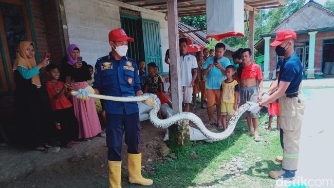 "Ditemukan di tengah sawah warga, pas mau panen kok diam saja ularnya. Panjangnya sekitar 4 meter," ujar salah satu warga, Kevin, Minggu (20/3/2022).