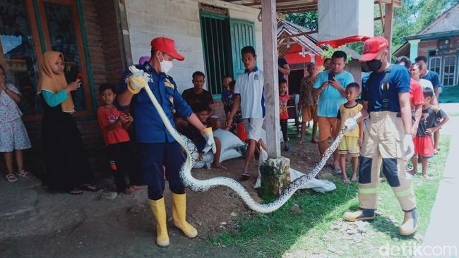 "Ditemukan di tengah sawah warga, pas mau panen kok diam saja ularnya. Panjangnya sekitar 4 meter," ujar salah satu warga, Kevin.