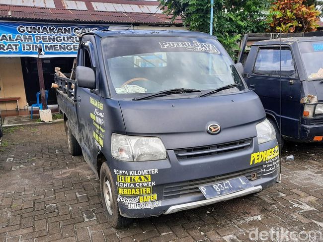 Pantauan detikJatim di lapangan, kerusakan pikap jenis Gran Max nopol P 8347 A di beberapa bagian bodi terdapat baret.