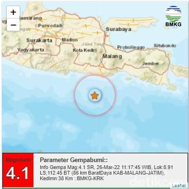 | Baca juga: Gempa M 4.1 Guncang Malang |