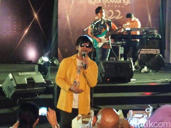 D'Masiv menghibur masyarakat Banyuwangi di Gesibu Blambangan, Minggu (27/3/2022) malam. "Kita minta doa agar kami segera pulih," ujar Rian di depan para penonton.