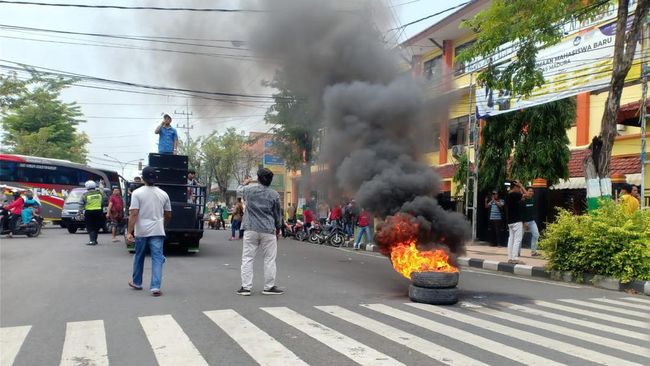 Aksi sempat tertahan lantaran pendemo dijaga ketat dan hanya bisa berorasi dengan jarak 300 meter dari kantor DPRD. Karena kesal tidak bisa masuk, pendemo sempat melakukan aksi bakar ban. Namun, berhasil dipadamkan oleh petugas.