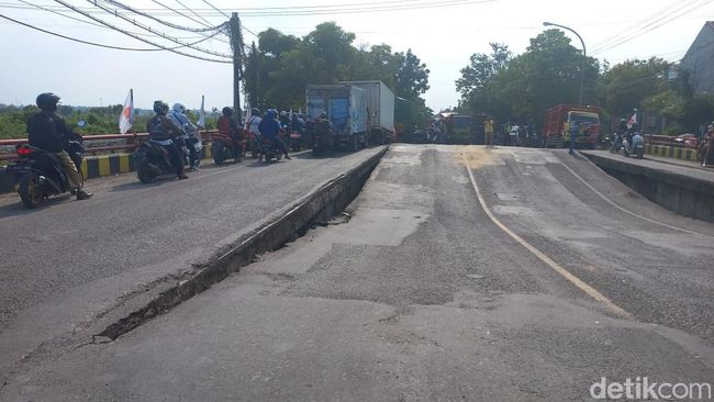 Jembatan Balun di Jalan Jaksa Agung Suprapto, Lamongan, itu ambles kurang lebih 1 meter. Dampaknya jalur yang ambles dari arah Surabaya maupun ke Babat macet.