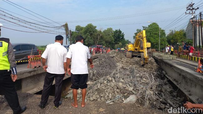 "Kalau pondasi jembatan itu aman. Karena yang memikul beban ketika kendaraan bergerak itu adalah balok girdernya. Karena balok ini, kan, di antara dua tumpuan, kemudian terus dilewati kendaraan hingga dia akan melendut sampai ambles," ujarnya.
