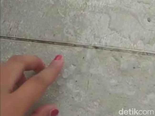 Fenomena hujan es terjadi di Surabaya siang ini. Pantauan detikJatim, ukuran es yang jatuh ke tanah tak terlampau besar, hanya sebesar kerikil hingga kuku orang dewasa.