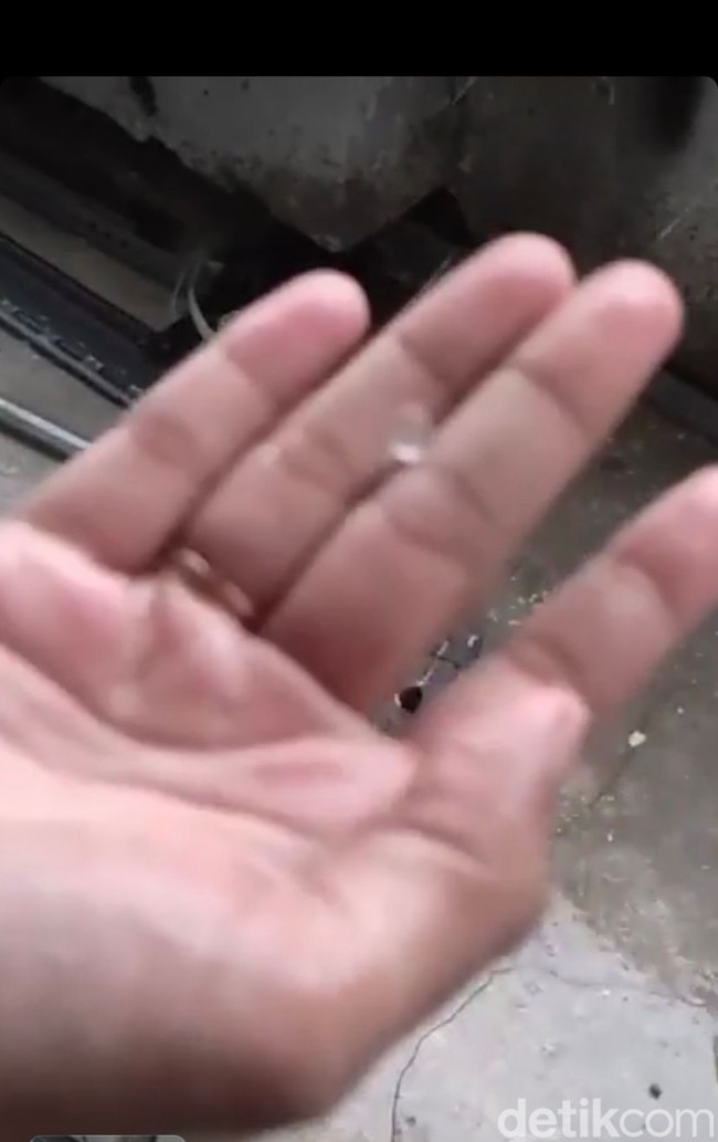 "Lho ya hujan es, hujan es," teriaknya sembari diamini rekan-rekannya dalam video.