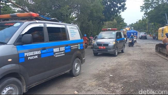 Sejumlah ambulans mobil sehat dari beberapa desa yang sedang mengangkut pasien ikut terjebak kemacetan. Untungnya, polisi dan pekerja di lokasi Jembatan Balun membantu mencarikan jalan bagi mobil ambulance ini untuk melintas.