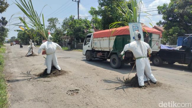 "Selain sebagai protes, boneka ini kami pasang sekaligus sebagai tanda bagi pengendara yang melintas biar tahu kalau jalannya rusak. Kalau malam juga kelihatan karena warnanya putih begitu, tapi bukan bermaksud menakut-nakuti," pungkas Sudirno.
