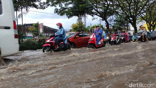 "Setiap hujan deras mesti selalu banjir begini. Dua ruas jalan, baik yang dari arah Utara maupun Selatan. Jadinya macet begini," katanya.