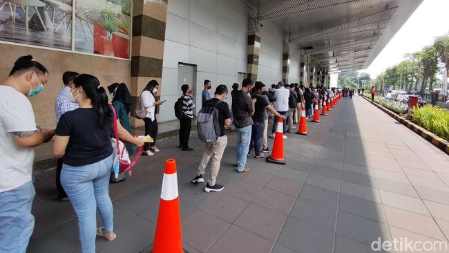 Pantauan detikJatim, antrean yang menurut petugas pelaksana vaksinasi hanya satu deret sejak pukul 08.00 WIB, berubah menjadi dua hingga tiga deret pada pukul 10.00 WIB.