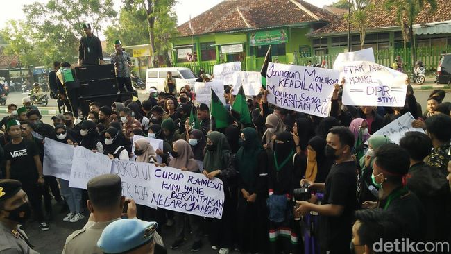 Pantauan detikJatim, demo diawali dari Monumen Arek Lancor, ratusan mahasiswa itu kemudian bergerak ke gedung DPRD dengan berjalan kaki pada sore hari.