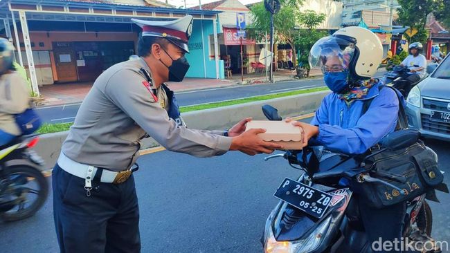"Saya kira tadi ada cegatan. Tapi ternyata bagi-bagi menu takjil. Sempat kaget. Tapi saya lengkap kok surat kendaraannya," ujar Defi (26) pengendara motor kepada detikJatim.