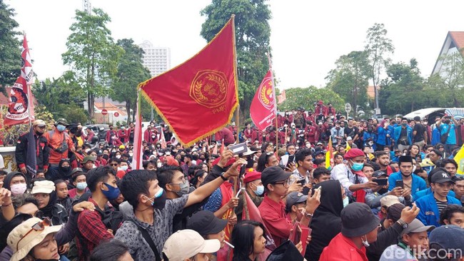 Aksi yang dilakukan selama 1 jam itu ditemui oleh Wali Kota Eri. Walau sempat terjadi insiden massa demo mendorong pagar selama 7 menit.