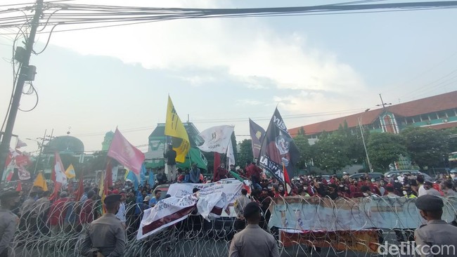 Ratusan mahasiswa Cipayung Plus yang mengikuti aksi demo yang sebelumnya mendatangi Pemkot Surabaya tiba di DPRD Jatim, di Jalan Indrapura, Kecamatan Bubutan sekitar pukul 16.15 WIB. Kedatangan mereka kembali menyebabkan kepadatan lalu lintas di sekitar DPRD Jatim.