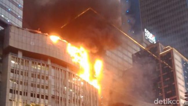 Budi melihat ada asap tebal yang membubung tinggi. Lalu, tak lama, api mulai berjatuhan dari atas gedung.
