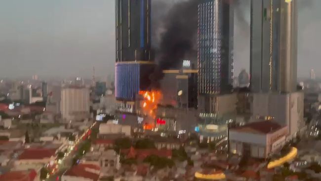 Tunjungan Plaza (TP) 5 terbakar pada Rabu sore (13/4/2022). Sejumlah pengunjung panik dan berhamburan keluar ke Jalan Embong Malang.