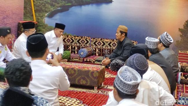 Sekjen PPP Arwani Thomafi mengunjungi Kampung Madinah di Desa Temboro, Kecamatan Karas. Ia meminta restu kiai di Ponpes Al Fatah terkait Pemilu 2024.