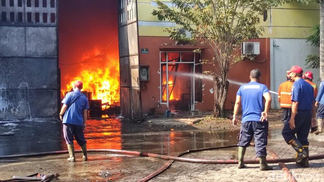 Kebakaran terjadi di sebuah komplek pergudangan di Sidoarjo. Sampai saat ini, petugas masih berusaha melakukan pemadaman.