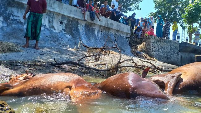Latif salah satu warga Camplong mengaku melihat tumpukan sapi mengambang ini sekitar pukul 07.00 WIB.