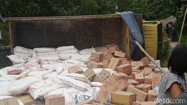 "Kerugian ditaksir mencapai Rp 20 juta, truk sembako itu milik sebuah toko," pungkas Fatoni.