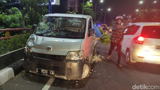 "Diduga ban mobil Granmax belakang kir meletus. Jadi mobil Granmax melompati pembatas, lalu menabrak mobil saya bagian depan sebelah kiri," kata Saiful di lokasi kejadian.