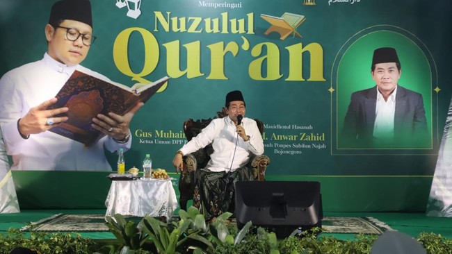"Intinya adalah kita peringatan Nuzulul Qur'an, penting bagi PKB, karena PKB lahir dari NU, maka ikhtiar lahir tidak cukup. Kita perkuat dengan ikthiar batin. Ada satu harapan Kiai Anwar kepada kami, bahwa jabatan itu harus diniati sebagai bentuk ibadah yang memberikan kemanfaatan sesama manusia," tandasnya.