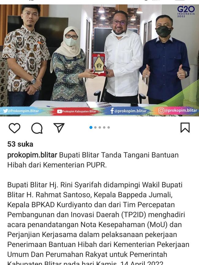 Informasi terkait dana hibah ini diposting di Instagram @pemkab_blitar dan Instagram @prokopim.blitar pada Sabtu (16/4/2022).