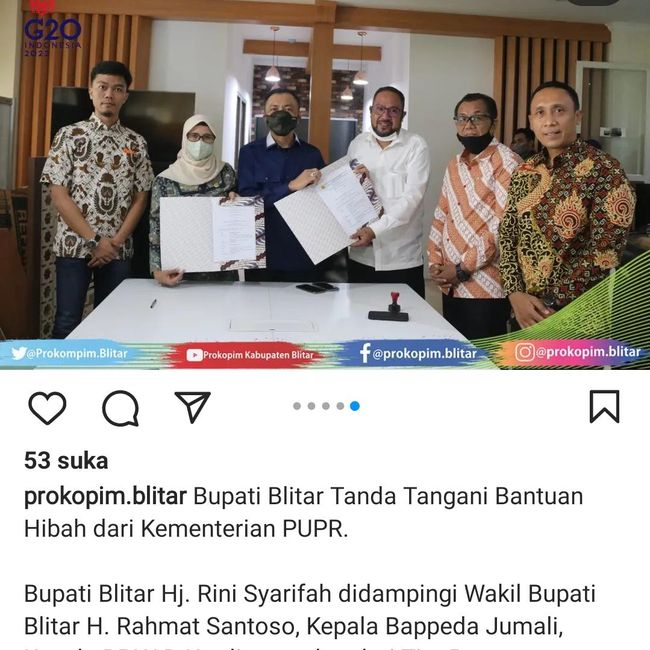 "Justru kalau saya sembunyikan informasi ini, saya bisa salah. Bisa ada penilaian bupati sama wabup main proyek jalan ini. Makanya, ketika penandatanganan MoU itu selesai, saya minta disebar di berbagai media massa dan akun medsos kami. Supaya warga Blitar tahu semua," tandasnya.