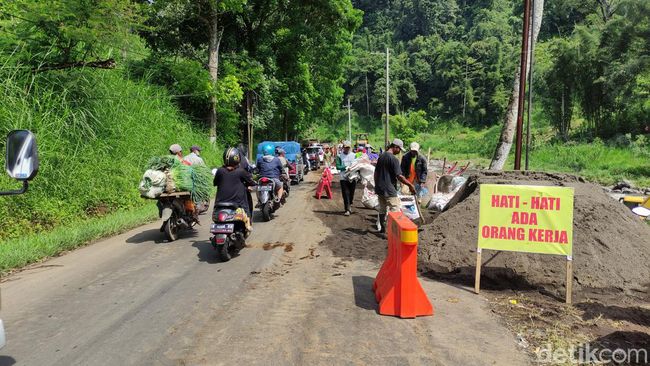 Selama perbaikan, arus lalu lintas di lokasi diberlakukan sistem buka tutup. Kepadatan pun terjadi, baik dari Pujon (timur) maupun arah sebaliknya (Kediri), karena harus bergantian melewati titik longsor.