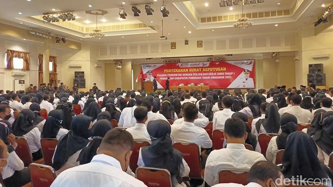 Pantauan detikJatim, ratusan guru ini terlihat sumringah saat menerima SK P3K. Mereka lega, penantian panjang tentang status kepegawaian mereka akhirnya diakui negara serta sejajar dengan PNS.