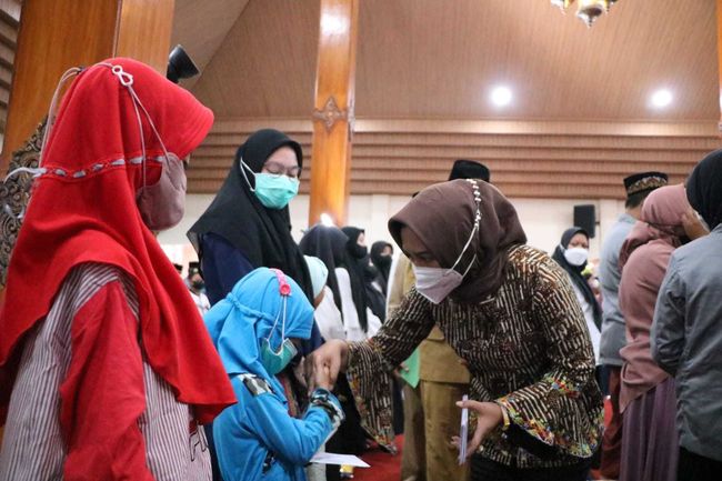 Wali Kota Mojokerto Ika Puspitasari mengundang 200 anak yatim dari panti asuhan se-Kota Mojokerto ke Pendopo Sabha Krida Tama Rumah Rakyat. Wali kota yang akrab disapa Ning Ita itu membagikan santunan kepada 200 anak yatim tersebut.