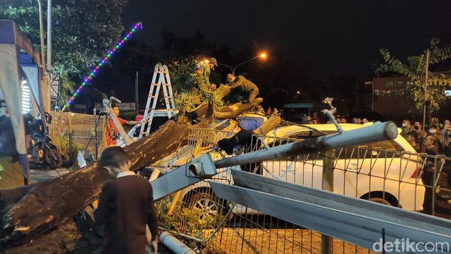 "Ada dua mobil yang parkir di halaman area masjid tertimpa pohon," jelas Bima.