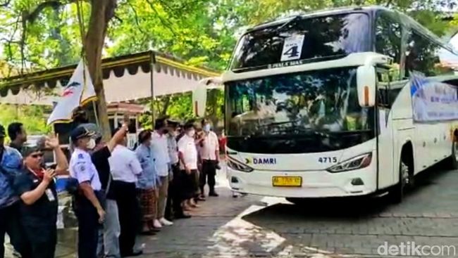 Titik keberangkatan program mudik gratis ini di Lapangan Niti Mandala Renon Denpasar, dilepas oleh Administrasi Pembangunan Pemkot Denpasar, Anak Agung Gde Risnawan, didampingi Ketua Ikawangi Dewata, Agustinus Winjaya, Kamis (28/4/2022).