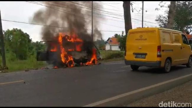 Sebuah Suzuki Carry yang membawa pemudik menuju Madura terbakar di Sampang. Kebakaran diduga dipicu korsleting kabel pengapian.