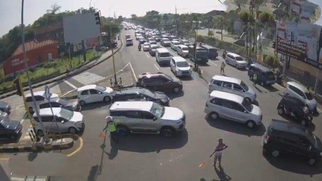 DetikJatim melihat melalui CCTV di akses keluar masuk dari jalur arteri ke gerbang tol (GT) Bandar, Astra Tol Jombang-Mojokerto. Hingga pukul 09.30 WIB, arus lalu lintas dari arah Jombang ke Nganjuk dan Kediri padat merayap.