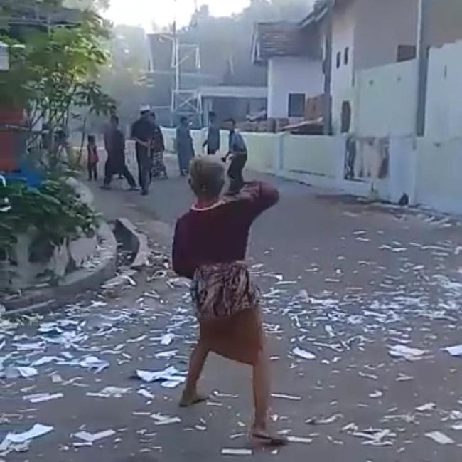Dalam video berdurasi 30 detik, tampak seorang nenek mengusir, sekelompok anak-anak tersebut langsung mundur dan bubar. Tampak di lokasi sisa-sisa kertas mercon berserakan di jalanan.