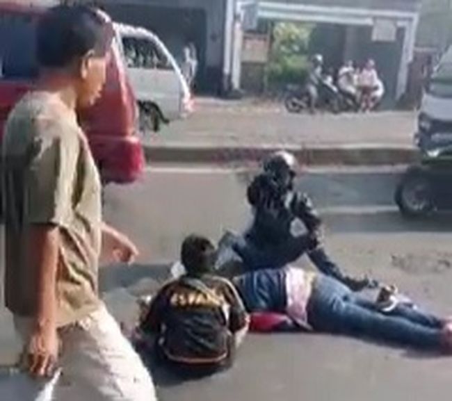 Akibatnya, Masringah terjatuh ke tengah jalan. Seketika ia tertabrak motor yang dikendarai putranya. Korban tewas di lokasi kecelakaan karena luka parah di kepala.