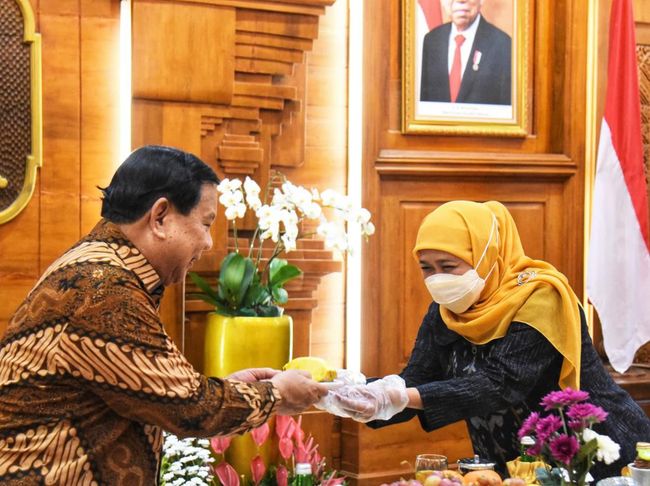 Ketum Partai Gerindra Prabowo Subianto terbang ke Surabaya untuk bertemu Gubernur Jatim Khofifah Indar Parawansa. Keduanya bertemu Selasa (3/5/2022) malam di Gedung Negara Grahadi, Surabaya.