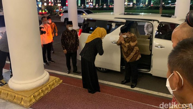 "Mohon maaf lahir batin Pak Prabowo, monggo pak, ini Sekdaprov Jatim Wahid Wahyudi, mantan Sekdaprov Heru Tjahjono," kata Khofifah sambil mengenalkan satu per satu jajaran OPD yang menyambut.