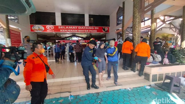 Kejadian ini disebut berlangsung pada 13.45 WIB. Para korban saat itu sedang menikmati liburan di kolam renang Kenpark Surabaya. Saat ini para korban masih mendapat penanganan.