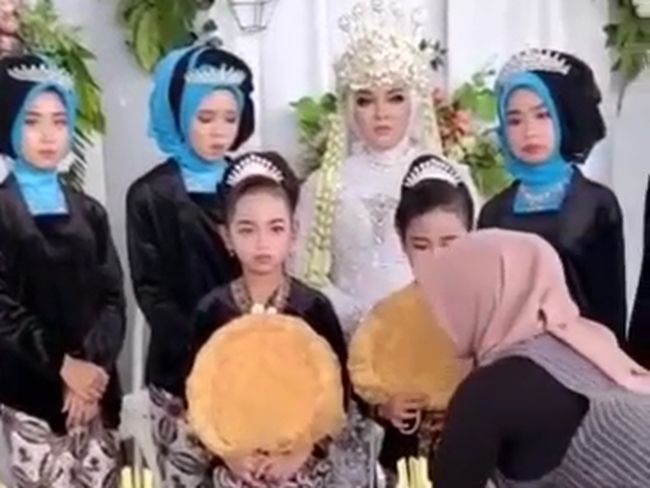 Viralnya resepsi tanpa kehadiran mempelai pria tersebut ada pada video berdurasi 17 detik yang memperlihatkan mempelai perempuan berbusana pengantin warna putih berdiri di pelaminan diapit oleh 4 pengiring perempuan berkebaya hitam berkerudung biru. Tampak pula dua anak perempuan berbusana kebaya berdiri di depan mempelai perempuan.