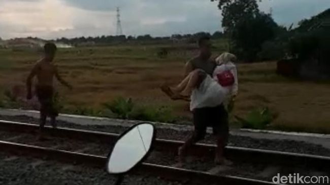 Saat kereta melintas, perempuan itu mencelat atau terpelanting ke sawah yang ada samping rel. Warga pun berdatangan untuk menolongnya.