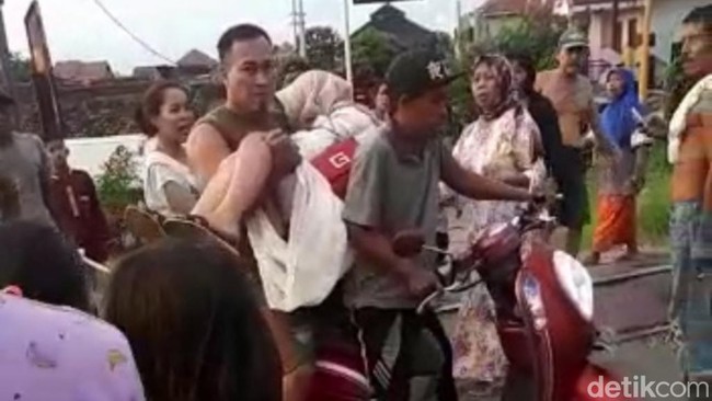 Saat kereta melintas, perempuan itu mencelat atau terpelanting ke sawah yang ada samping rel. Warga pun berdatangan untuk menolongnya.