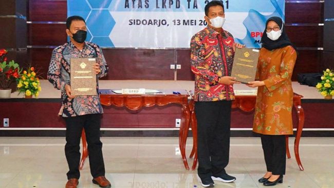Hasil audit BPK tersebut diterima Bupati Banyuwangi Ipuk Fiestiandani dan Wakil Ketua DPRD Banyuwangi Ruliyono di kantor BPK Jawa Timur, Jumat (13/5/2022). Penyerahan dilakukan oleh Kepala BPK Perwakilan Jatim, Joko Agus Setyono.