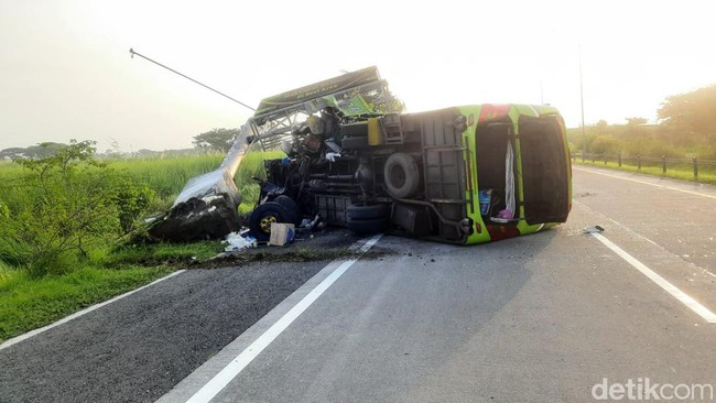 "Bus oleng ke kiri kemudian menabrak tiang VMS atau tiang pesan-pesan sekitar pukul 06.15 WIB," kata Dwi kepada detikJatim, Senin (16/5/2022).