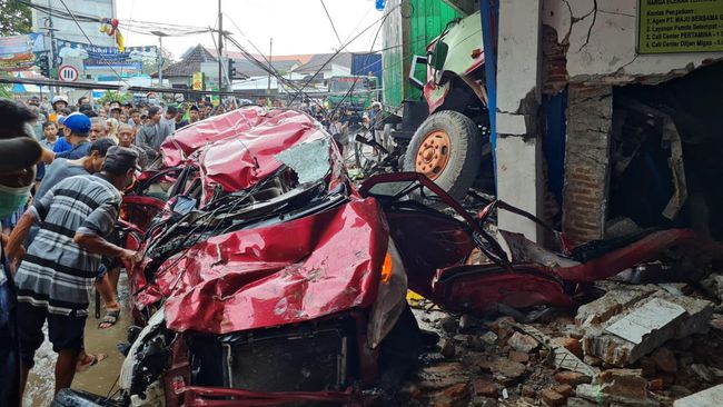 Terlihat dalam foto tersebut, di dalam mobil yang ringsek parah itu diduga ada korban jiwa masih terjebak di mobil itu.
