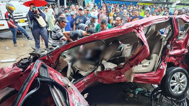 Terlihat dalam foto yang didapat detikJatim dari Kasat Lantas Polres Gresik AKP Engkos Sarkozy, mobil itu ringsek parah. Kecelakaan menyebabkan pengemudi Ertiga tewas tergencet dan sopir truk trailer mengalami luka-luka.
