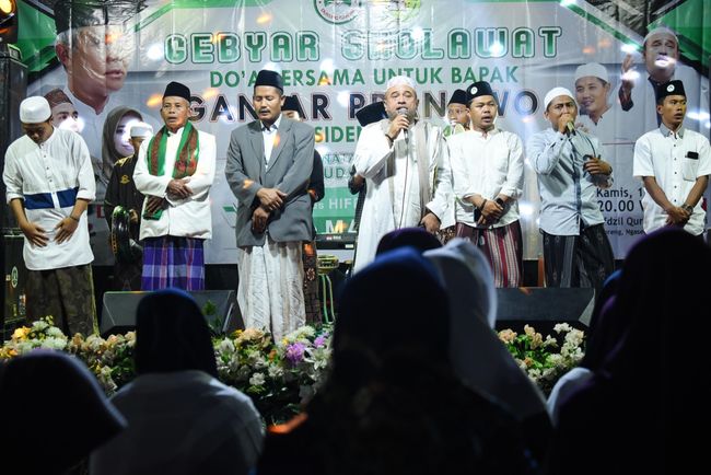 Ribuan santri menggelar gebyar selawat dan doa bersama mendukung Gubernur Jawa Tengah Ganjar Pranowo menjadi presiden Indonesia periode 2024-2029. Acara diadakan oleh Santri Dukung Ganjar di Pondok Pesantren Hifdzil Qur'an Al Marzuqi, Jawa Timur.